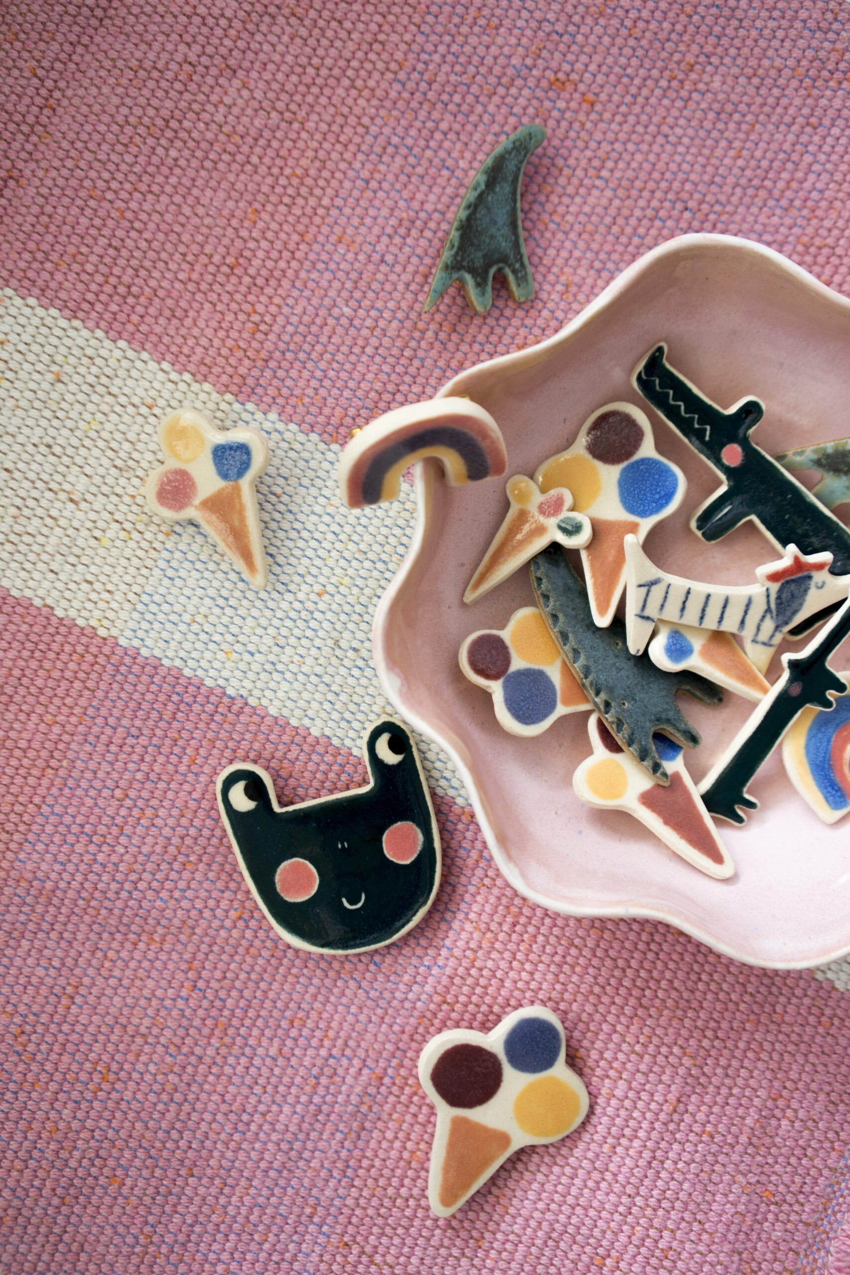 Nie ma dwóch takich samych, ponieważ każda broszka wycinana jest, formowana i szkliwiona ręcznie, prawdziwie misterna robota!