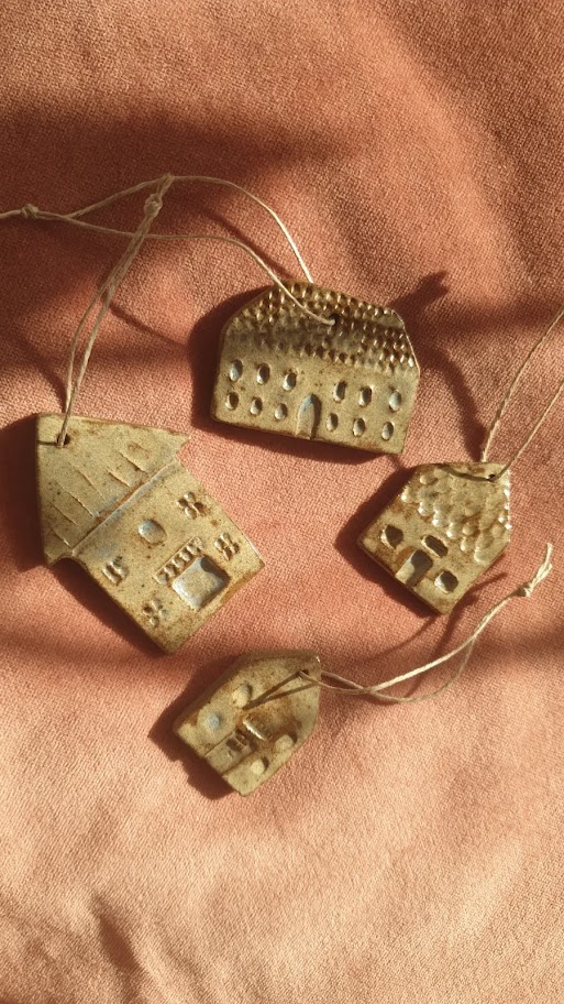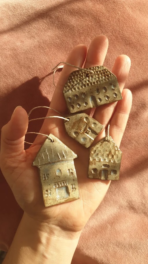 Ręcznie robione z gliny (w kolorze pieprz i sól), następnie pokryte szkliwem beżowo-szaro-błękitnym. Nadadzą wyjątkowego charakteru zarówno świątecznemu drzewku jak i gałęzi w wazonie, która wróciła z Tobą z leśnego spaceru.
