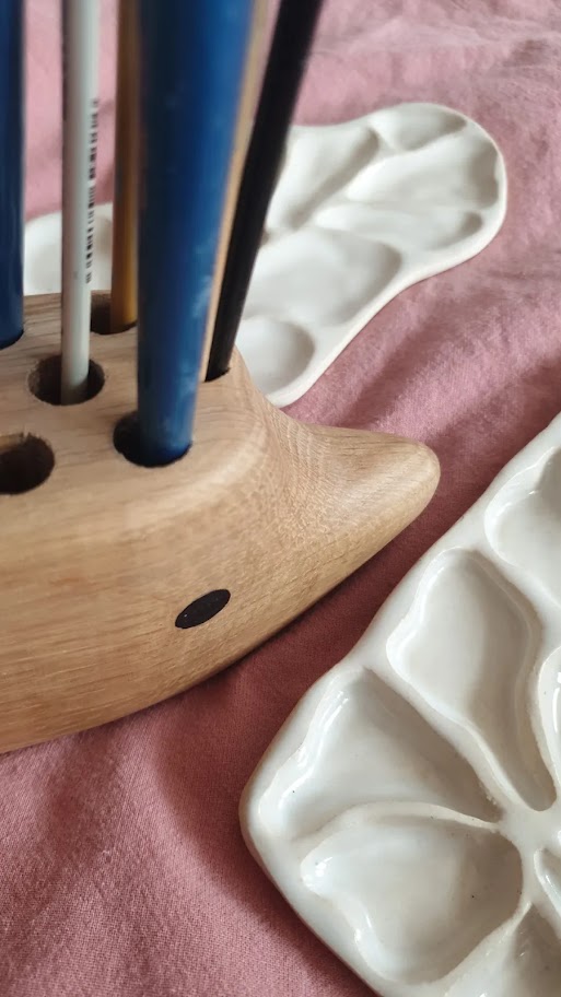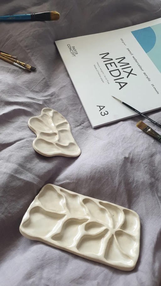 Lubisz otaczać się pięknymi przedmiotami? A może znasz kogoś kto ceni to, co wyjątkowe? Sam zajmujesz się tworzeniem a akwarele to Twój świat? Ręcznie lepiona paletka do akwareli to odpowiedź na Twoje potrzeby. 9 przegródek do wypełnienia kolorową farbą. Piękny i przemyślany umilacz pracy ilustratora i przy okazji bardzo fotogeniczny.